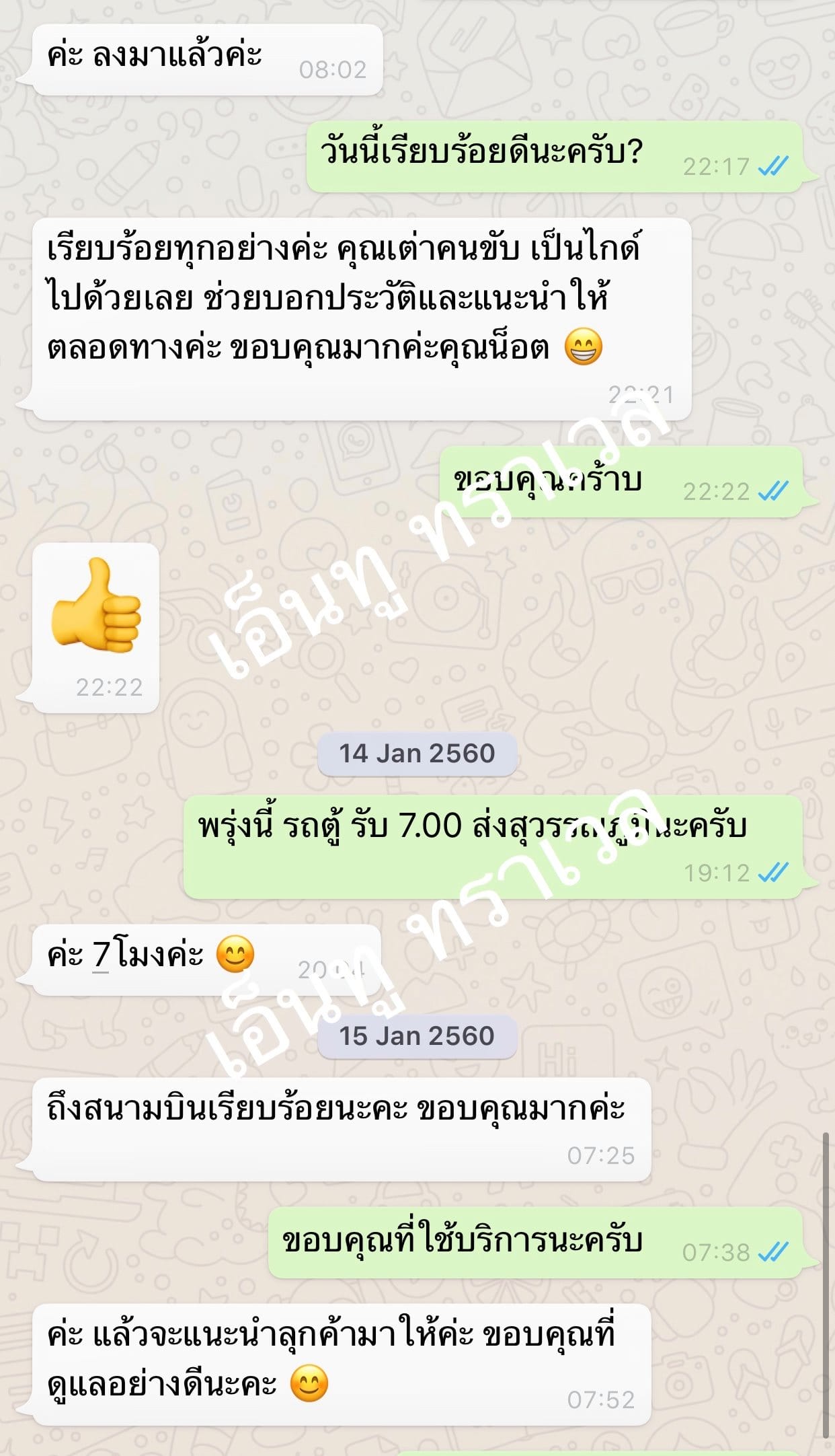 Easy to contact which makes a huge difference- Bangkok airport is very big so easy to get lost .Thankyou for great service.